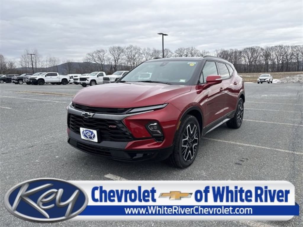 Key Chevrolet of White River is proud to present you with another True Market Priced Vehicle. This 2026 Chevrolet Blazer RS is loaded with the following Factory Options: AWD Driver Confidence II Package (Adaptive Cruise Control, Enhanced Automatic Emergency Braking, HD Surround Vision, Rear Camera Mirror, Rear Camera Mirror Washer, and Safety Alert Seat), Enhanced Convenience Package (Heated Rear Outboard Seating Positions, Memory Settings, Power Tilt and Telescoping Steering Column, and Ventilated Driver and Front Passenger Seats), Floor Liner Package (1st and 2nd Row All-Weather Floor Liners and Integrated Cargo Liner), Preferred Equipment Group 1RS, AWD, 4-Wheel Disc Brakes, 6-Way Power Front Passenger Seat Adjuster, 8 Speakers, 8-Way Power Driver Seat Adjuster, ABS brakes, Air Conditioning, Alloy wheels, AM/FM radio: SiriusXM with 360L, Apple CarPlay/Android Auto, Auto High-beam Headlights, Auto-dimming door mirrors, Auto-dimming Rear-View mirror, Automatic temperature control, Bose Premium 8-Speaker Audio System Feature, Brake assist, Bumpers: body-color, Child-Seat-Sensing Airbag, Compass, Delay-off headlights, Driver door bin, Driver vanity mirror, Dual front impact airbags, Dual front side impact airbags, Electronic Stability Control, Emergency communication system: OnStar and Chevrolet connected services capable, Four wheel independent suspension, Front anti-roll bar, Front Bucket Seats, Front Center Armrest, Front dual zone A/C, Front reading lights, Fully automatic headlights, Garage door transmitter, Heated door mirrors, Heated Driver and Front Passenger Seats, Heated front seats, Heated steering wheel, Illuminated entry, Knee airbag, Leather Shift Knob, Leather steering wheel, Low tire pressure warning, Navigation System, Occupant sensing airbag, Outside temperature display, Overhead airbag, Overhead console, Panic alarm, Passenger door bin, Passenger vanity mirror, Perforated Leather-Appointed Seat Trim, Power door mirrors, Power Driver Lumbar Control, Power driver seat, Power Liftgate, Power Panoramic Tilt-Sliding Sunroof, Power passenger seat, Power steering, Power windows, Premium audio system: Chevrolet Infotainment 3 Premium, Radio data system, Radio: Chevrolet Infotainment 3 Premium System, Rear anti-roll bar, Rear reading lights, Rear seat center armrest, Rear window defroster, Rear window wiper, Remote keyless entry, Ride and Handling Suspension, Security system, SiriusXM with 360L Trial Subscription, Speed control, Speed-sensing steering, Split folding rear seat, Spoiler, Steering wheel mounted audio controls, Stop-Start Engine Control System, Tachometer, Telescoping steering wheel, Tilt steering wheel, Traction control, Trip computer, Turn signal indicator mirrors, Variably intermittent wipers, Voltmeter, Wheels: : 20 Technical Gray Aluminum, Wheels: : 21 High Gloss Black w/Machined Face, and Wireless Apple CarPlay/Wireless Android Auto!!