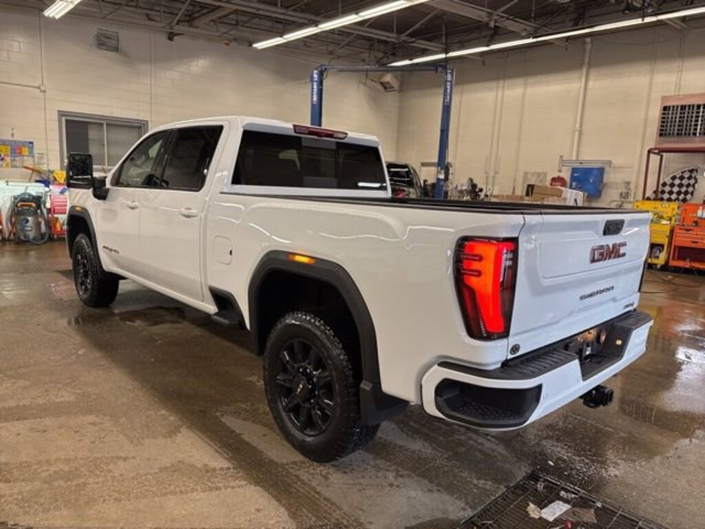 Summit White 2026 GMC Sierra 2500HD AT4 4WD 10-Speed Automatic Duramax 6.6L V8 Turbodiesel 10-Speed Automatic, 4WD, Jet Black With Kalahari Accents Leather.